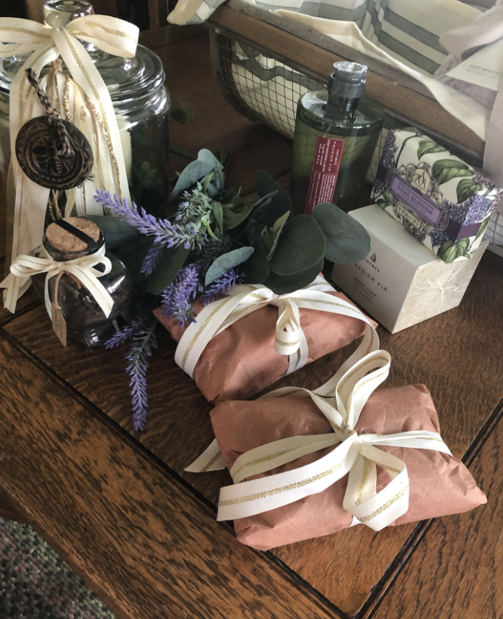 A bar of Lilac Blossom soap from World Market to give a little color and scent.