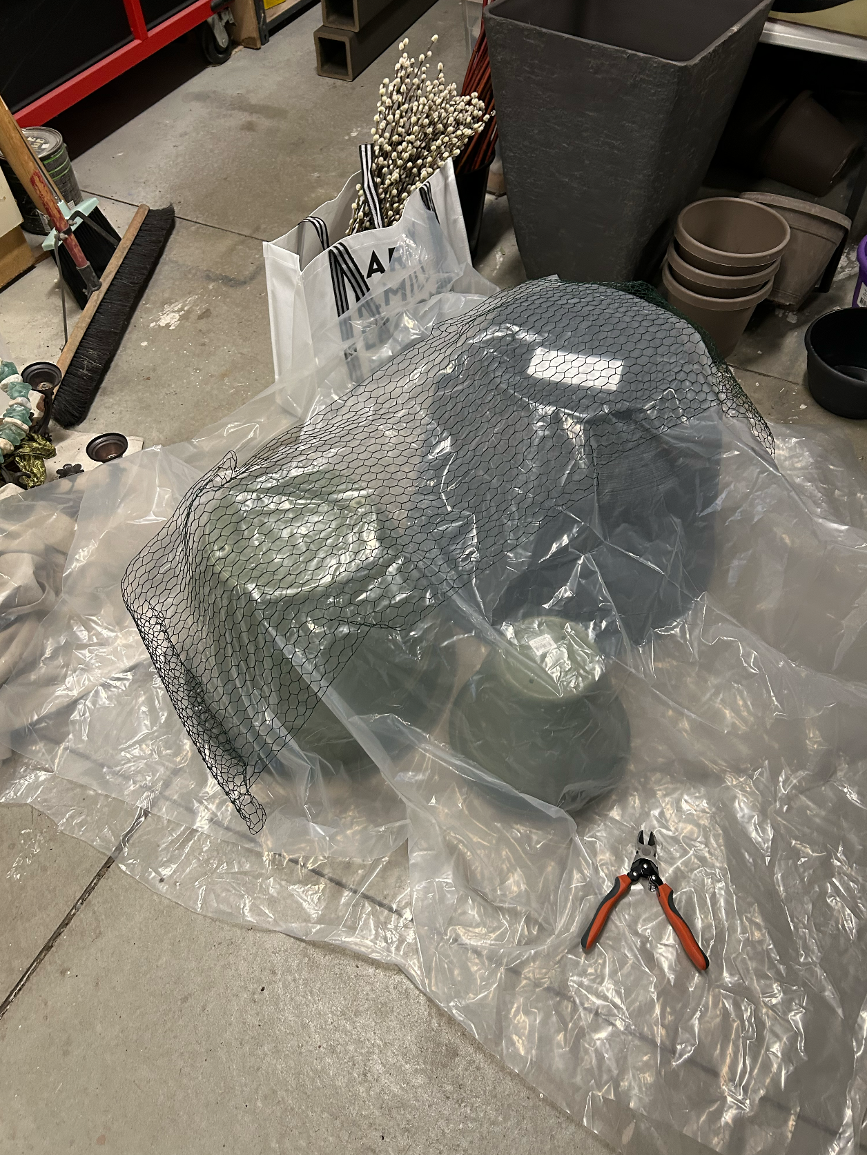 Tomorrow I will be working on creating a large rock for the Garden of Gethsemane using garden containers as my base, covered with plastic sheeting, a chicken wire frame over that, covering it with spray foam and smoothing it out to look like a rock. When it’s dry, I will sand or cut whatever needs to be shaped before painting it with “Rustoleum” stone spray paints.