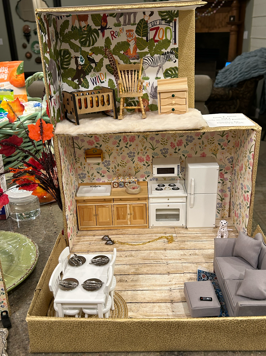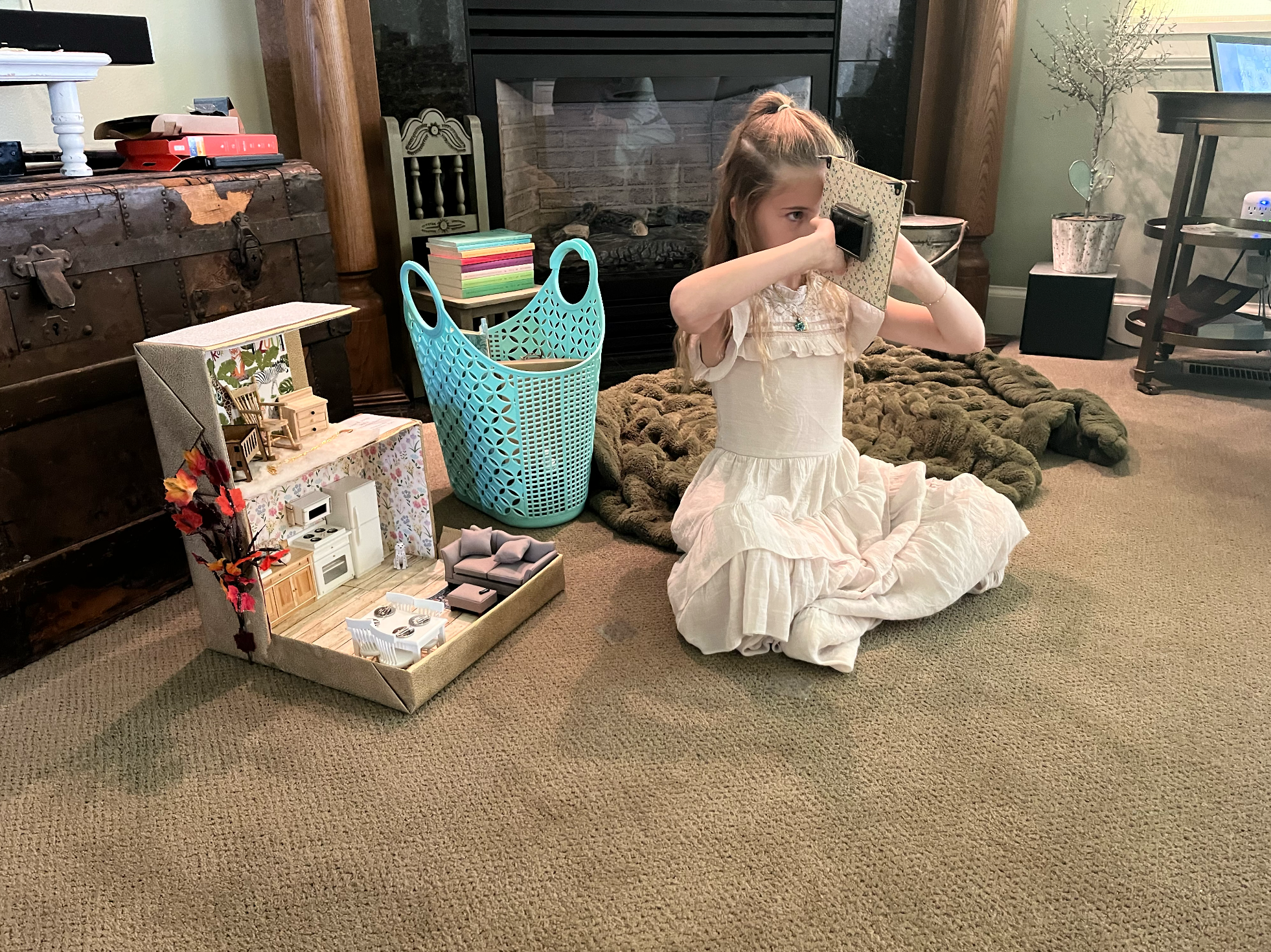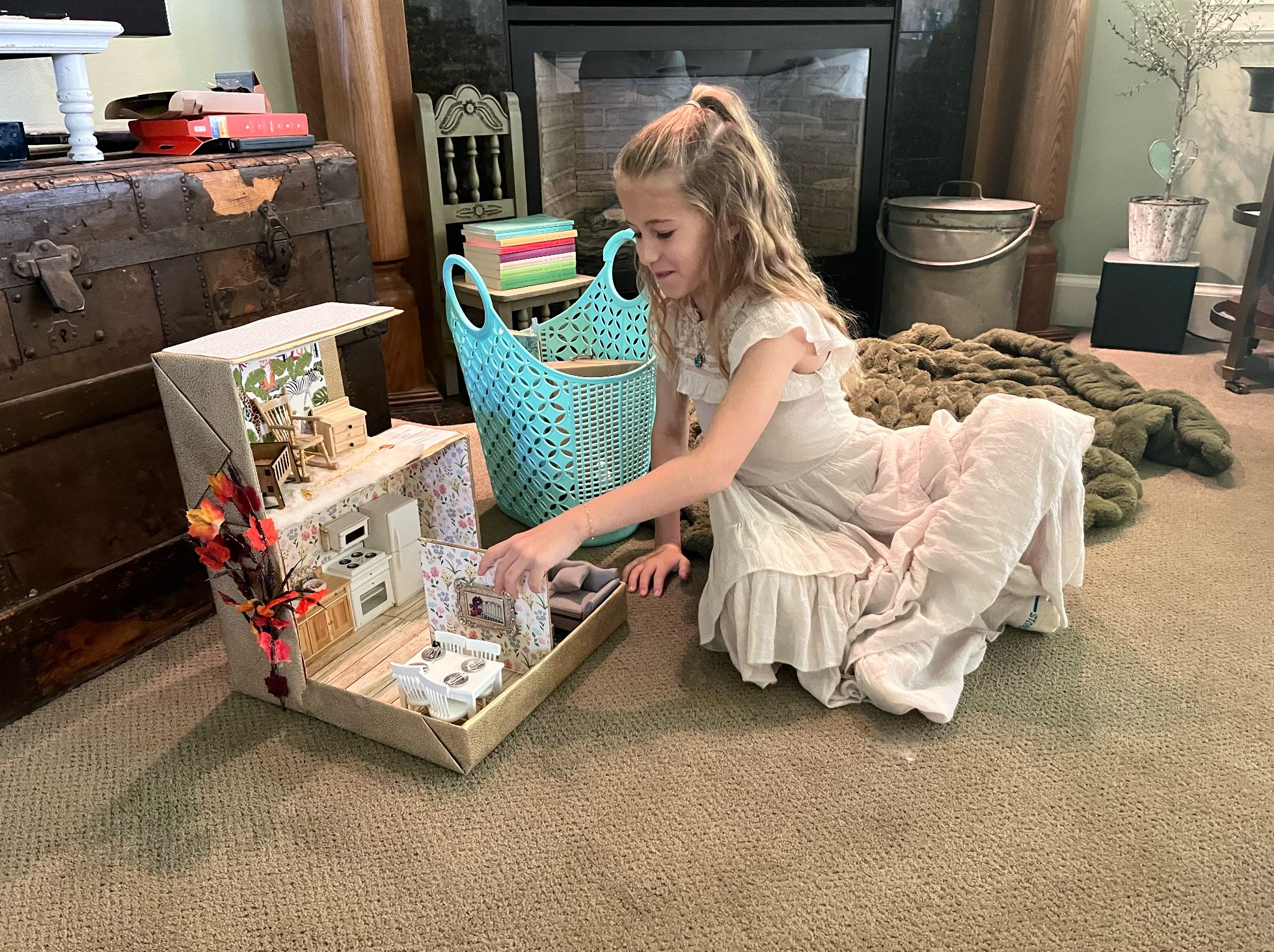 She also learned how to use a paper cutter with my help. Nothing made my grandma heart happier than to hear her squeal with excitement as she placed each finished item inside the diorama.