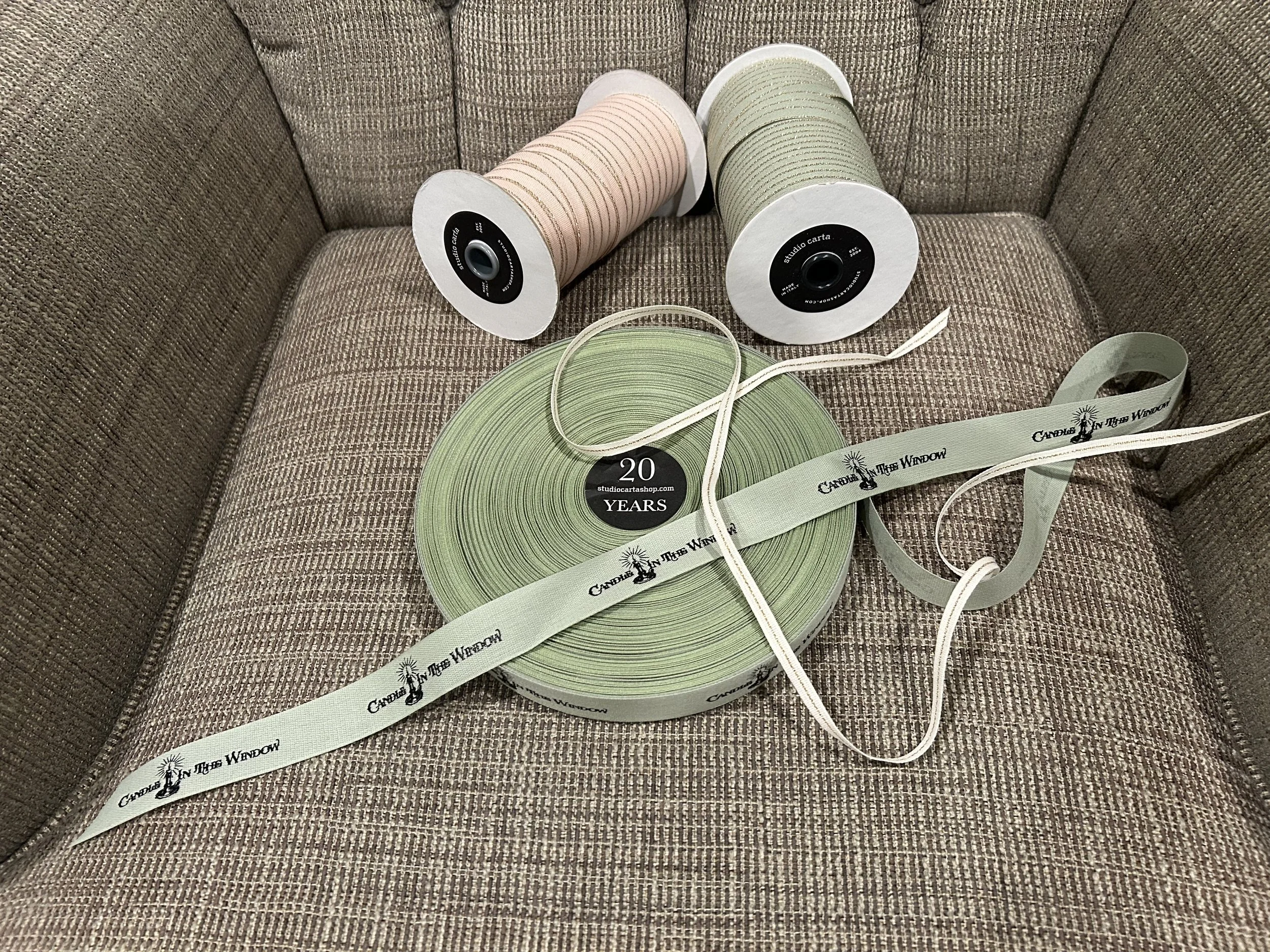 I found this lovely ribbon source a few years ago. It is a woman owned company. Angela and her daughter are wonderful to work with! I wanted some custom “Candle in the Window” ribbon, and the process was so much fun!