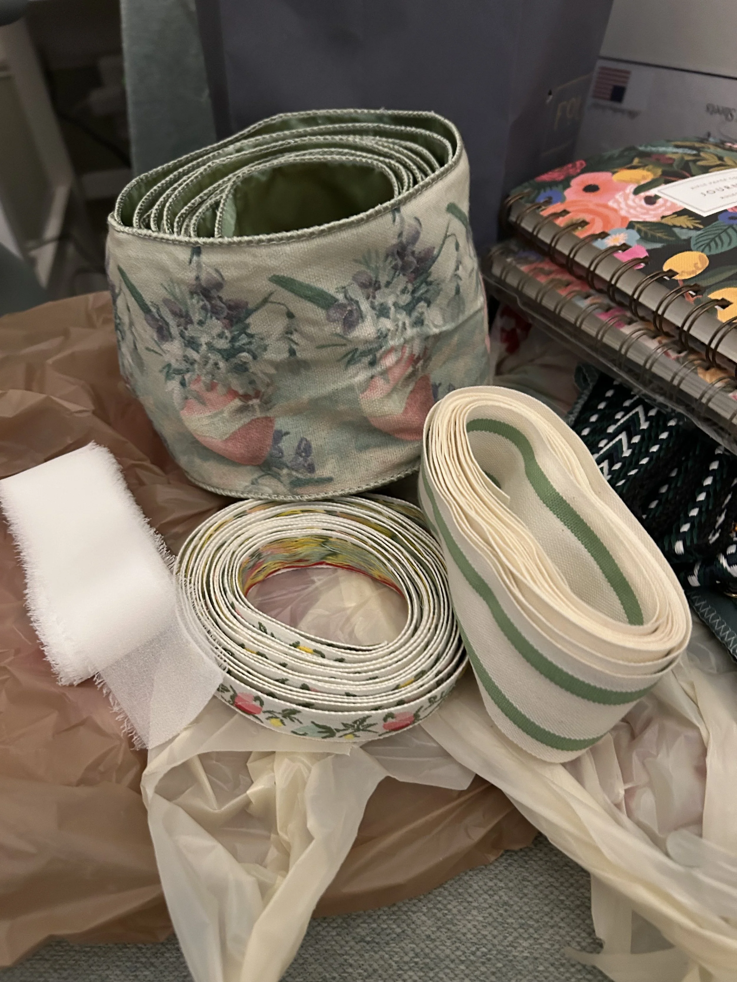 A few weeks ago, I received a request asking where I find my ribbon. The simple answer is all over the place! However, I will attempt to disclose my favorite places for you to start or add to your own ribbon problem, I mean collection, as well. 😊