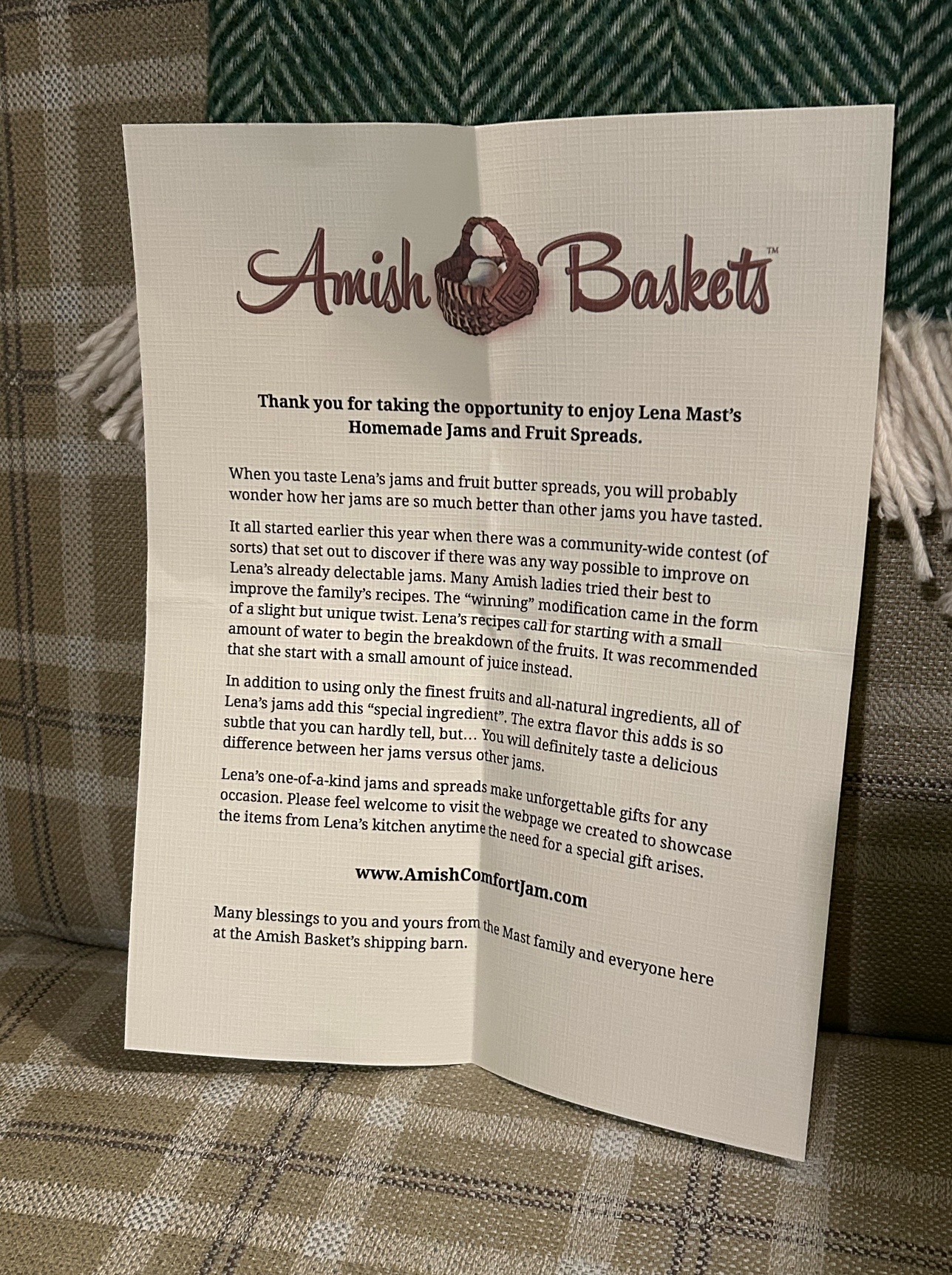 We wanted to do something nice for them as a thank you, so Ron and I will be dropping off a little gift basket that I ordered from my favorite Amish Basket Company. https://www.amishbaskets.com/collections/amish-gift-baskets/products/heart-shaped-jam-gift-basket Each little basket has two jars of hand-made jam made by wonderful Amish families from the fruits they grow themselves.